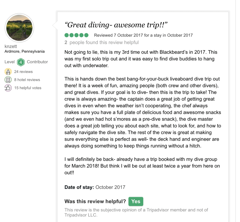 The Blackbeard’s Morning Star liveaboard has a fantastic crew – I asked other passengers who revealed how accommodating and caring the staff are on this Blackbeard’s cruises.