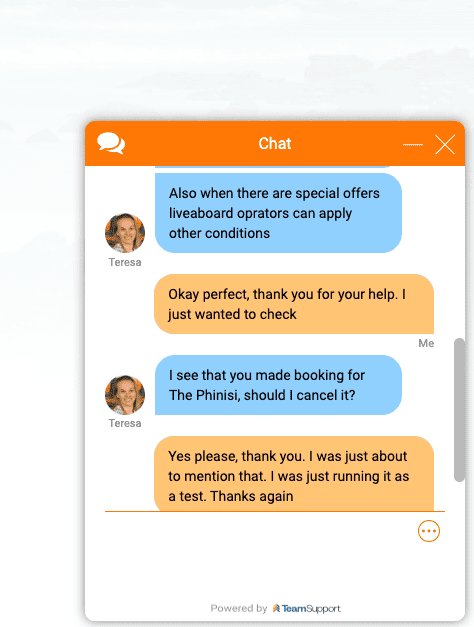 Step-by-step support: The Divebooker team is with you every step of the way. I noticed they’re available on the live chat, even for individual liveaboards. There’s a lot of convenience booking with their team.